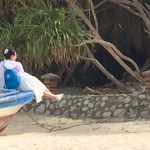 Hij weet van geen ophouden. Mevrouw op het bovendek, mevrouw op het achterdek, mevrouw op het bountystrandje dat we aandoen, mevrouw bij de aapjes, mevrouw bij de vissen. Het is bijna niet mogelijk van het natuurlijke schouwspel te genieten, zolang dit duo onze boottrip gebruikt als decor voor hun kennelijke fetisj. Gelukkig houdt het mens haar kleren aan. Alleen de zonnepet gaat af.